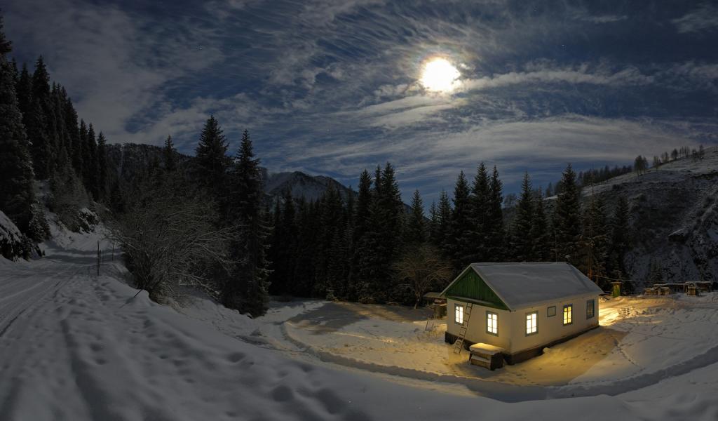Wallpaper Winter evening in the forest