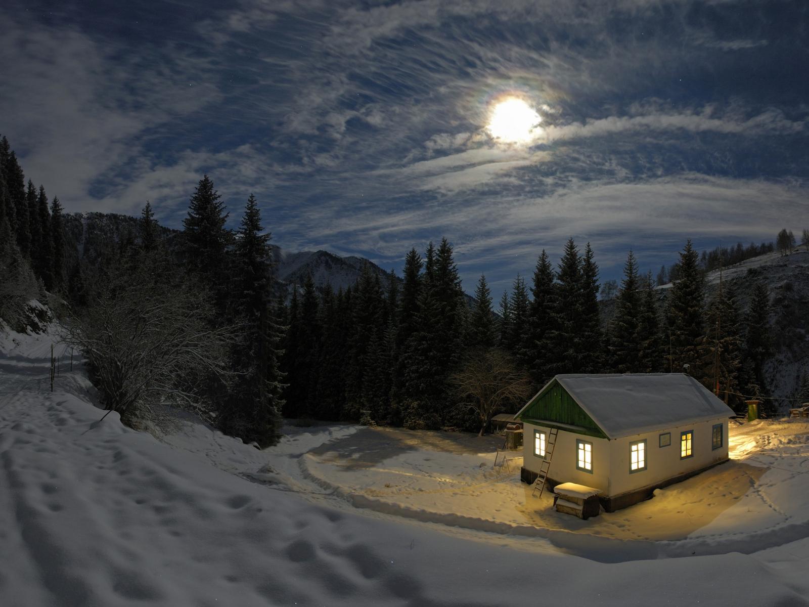 Wallpaper Winter evening in the forest