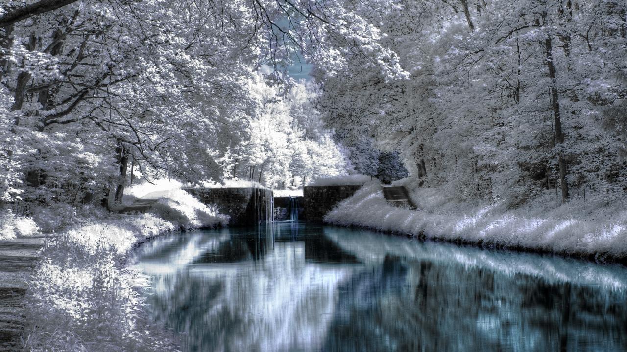 Wallpaper Winter forest, river, bridge