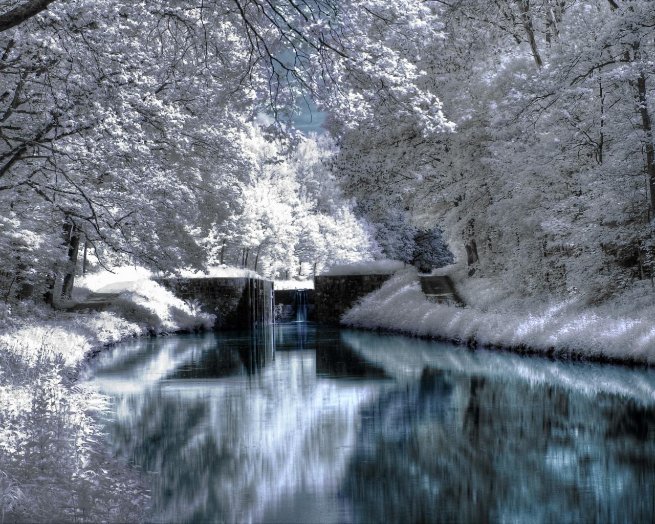 Wallpaper Winter forest, river, bridge