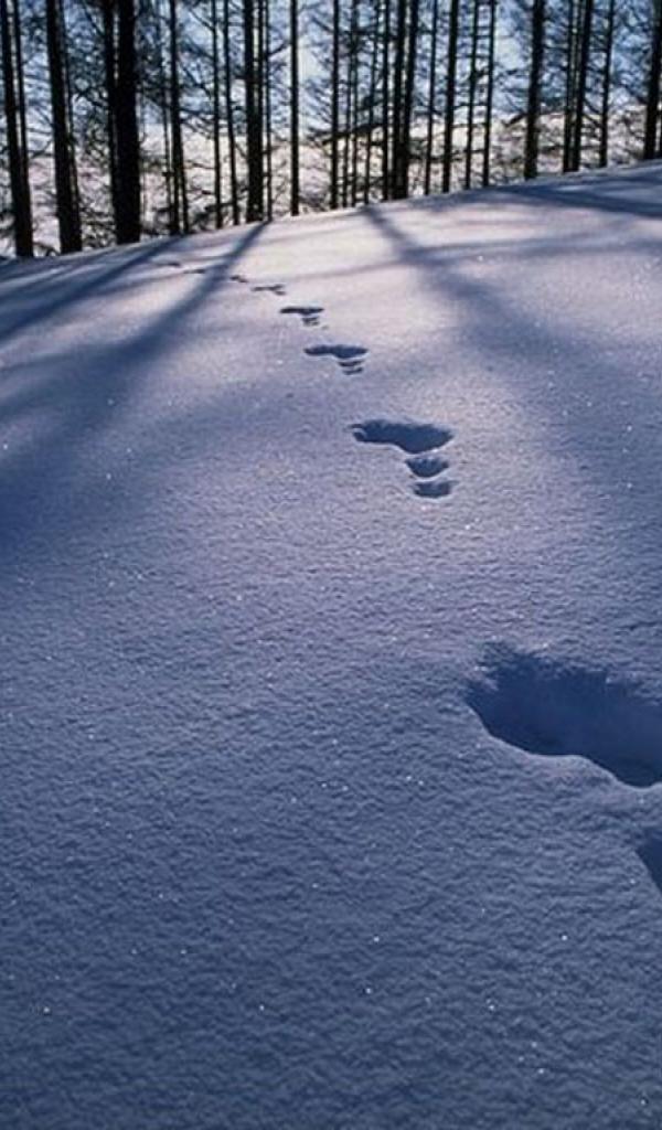 Wallpaper Traces of animals in the snow under the trees