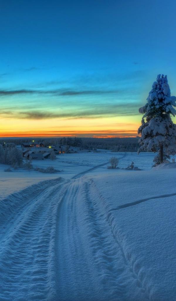 Wallpaper Winter road in the village