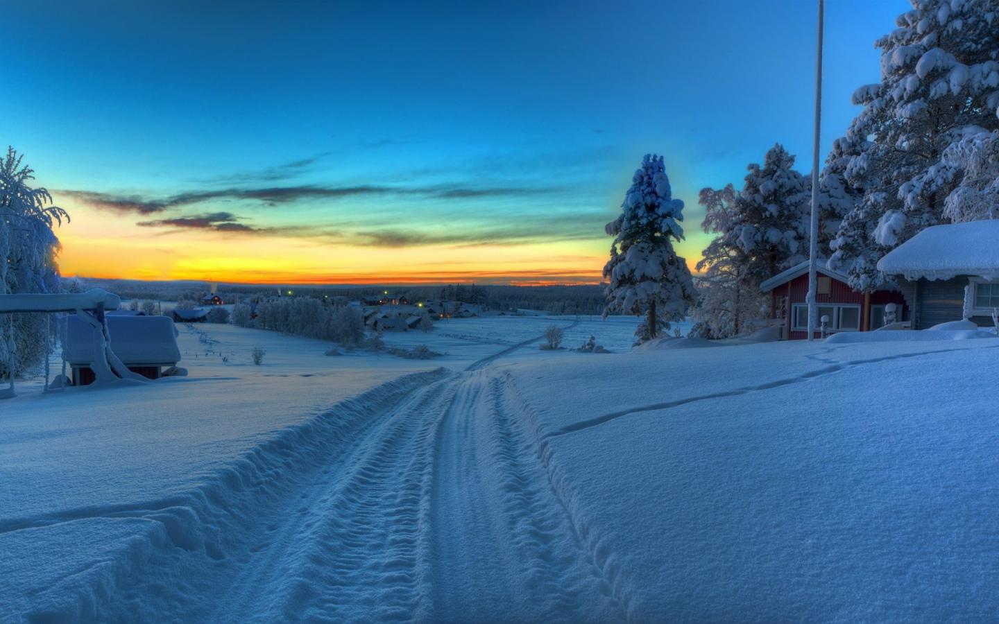 Wallpaper Winter road in the village
