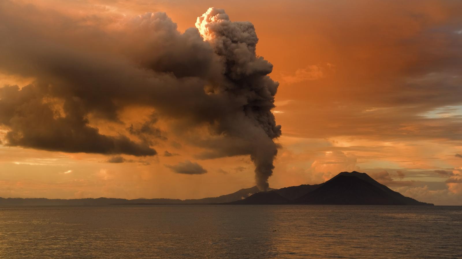 Wallpaper The eruption of a volcano on an island in the sea