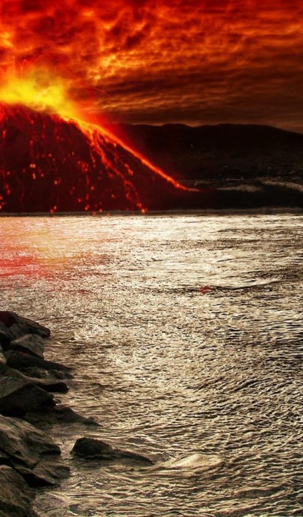 Wallpaper Volcano erupts in water