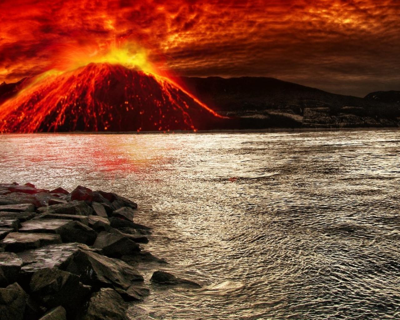 Wallpaper Volcano erupts in water