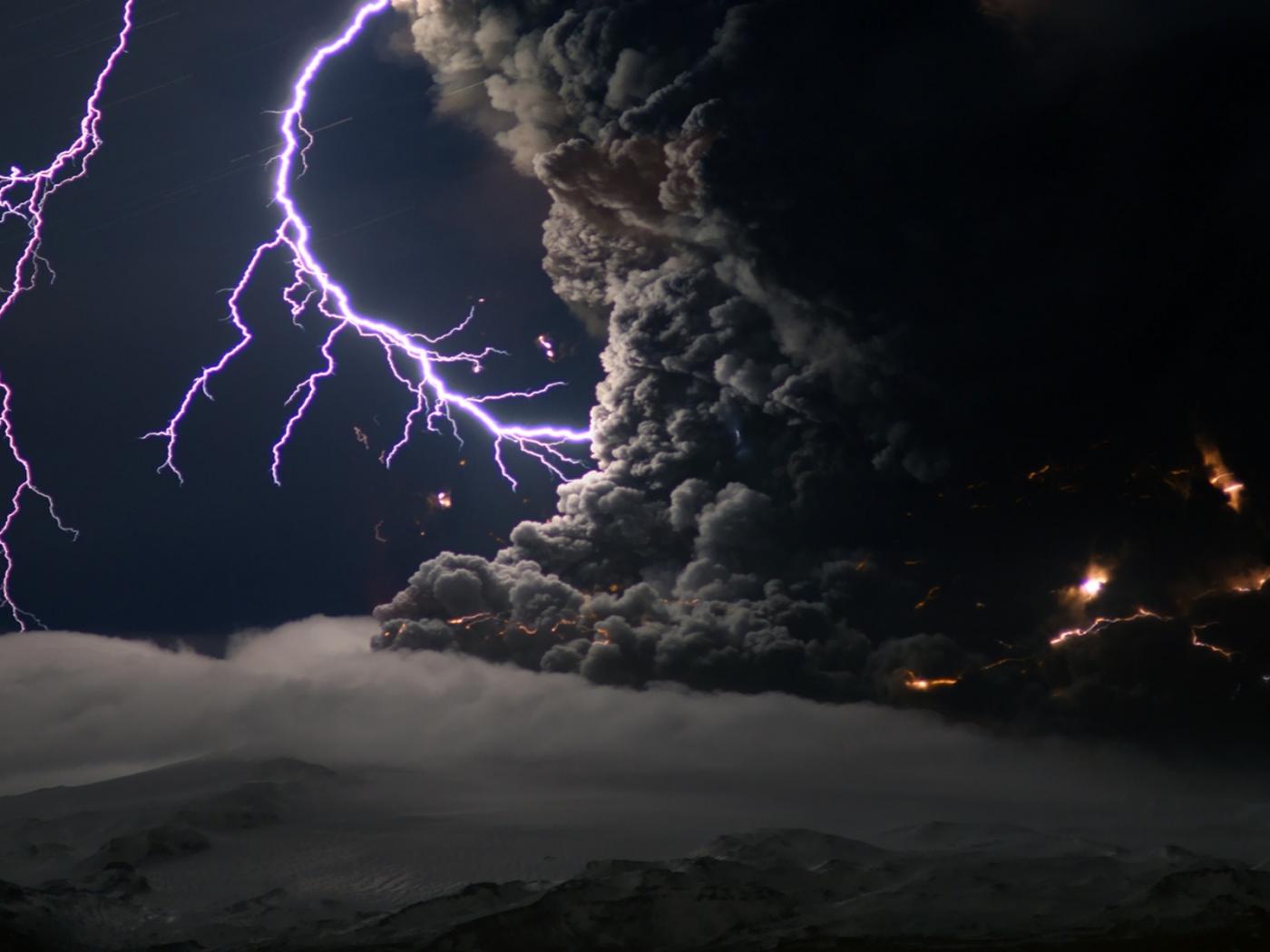 Wallpaper Volcano Ashes Lightning