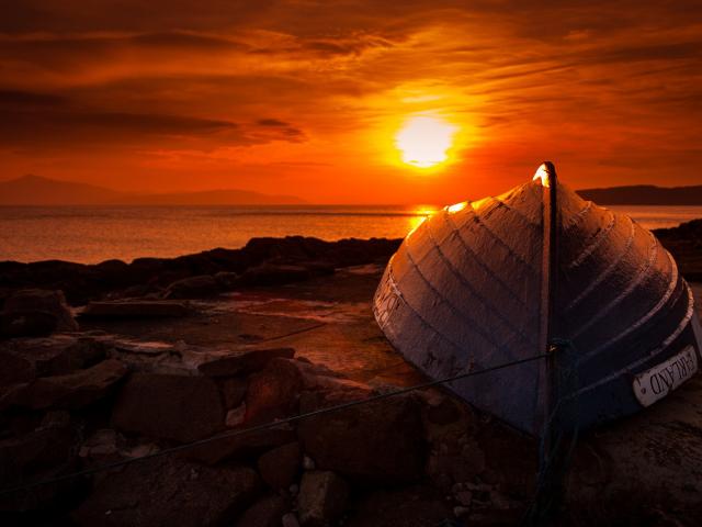 Wallpaper Upturned boat at sunset