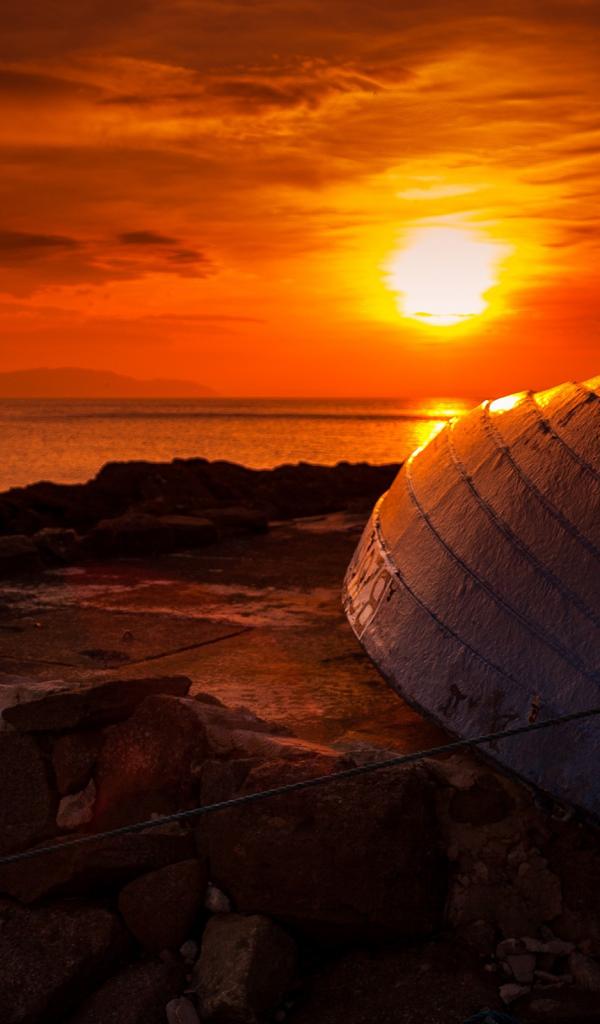 Wallpaper Upturned boat at sunset