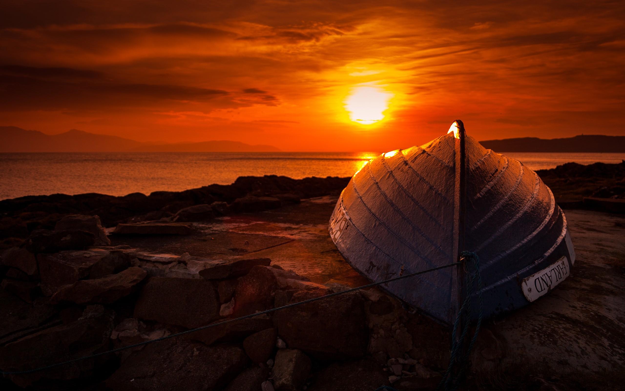 Wallpaper Upturned boat at sunset