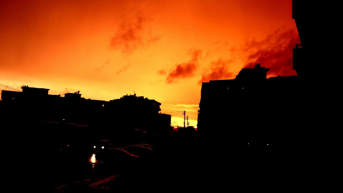 Wallpaper Silhouettes of buildings on the background of orange sky