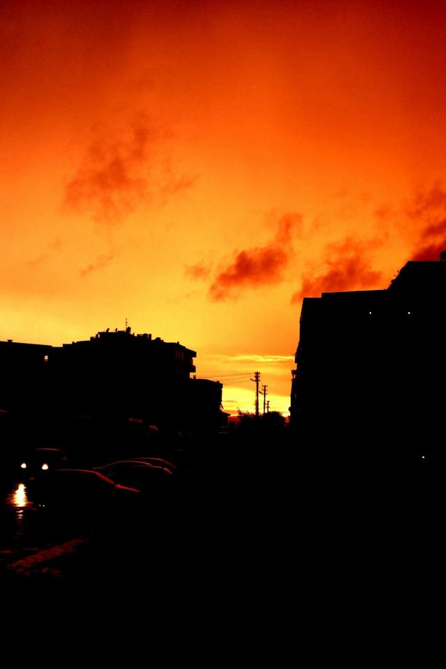 » Wallpaper Silhouettes of buildings on the background of orange sky