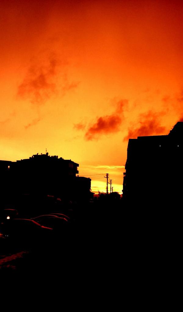 Wallpaper Silhouettes of buildings on the background of orange sky