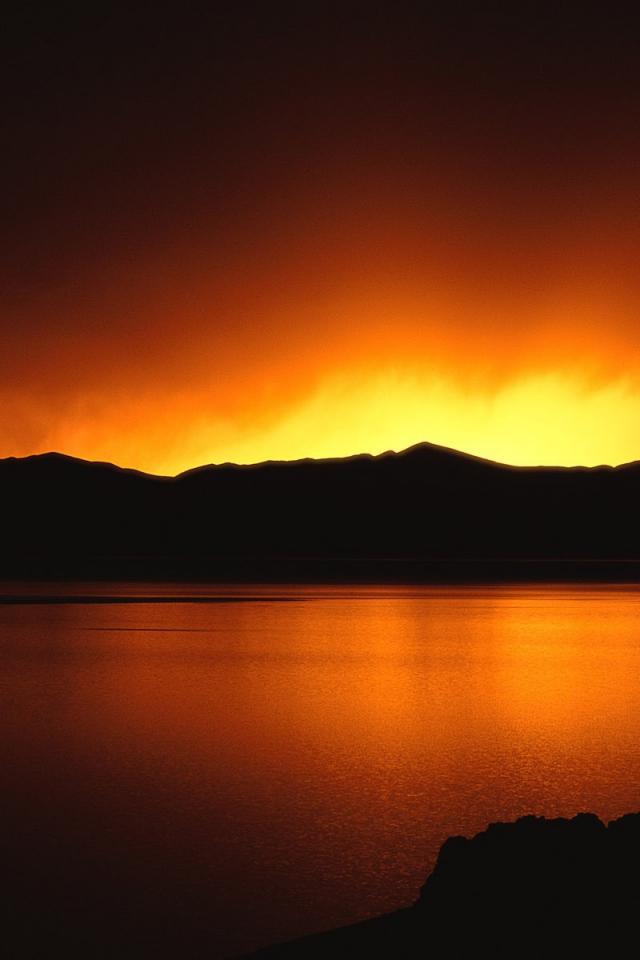 Wallpaper The sky glows over the edge of the mountains