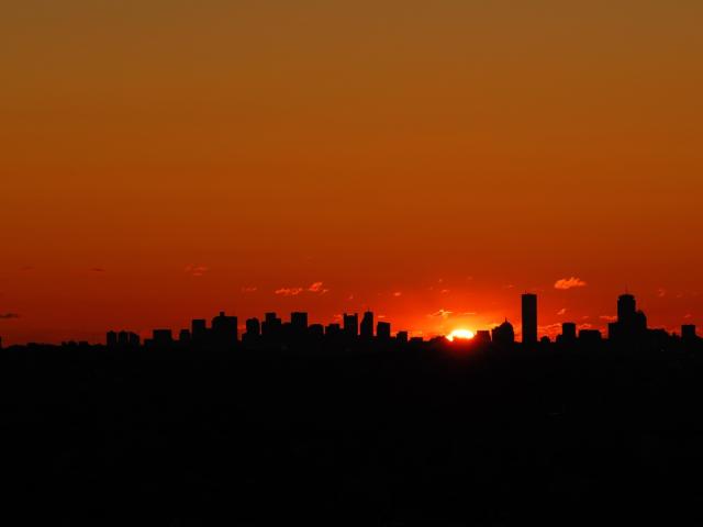 Wallpaper The sun hid behind the dark edge of skyscrapers