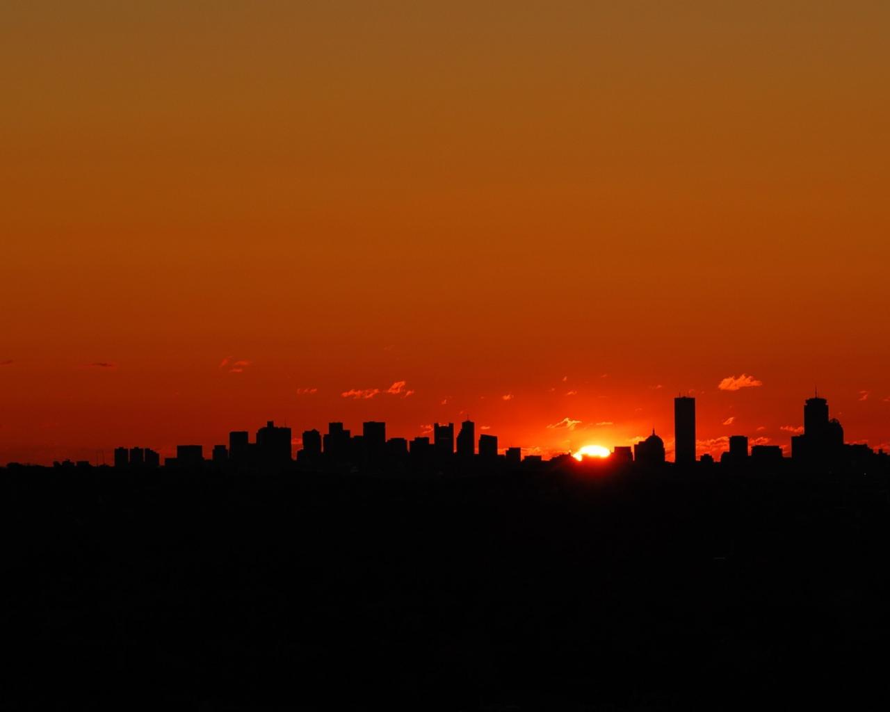Wallpaper The sun hid behind the dark edge of skyscrapers
