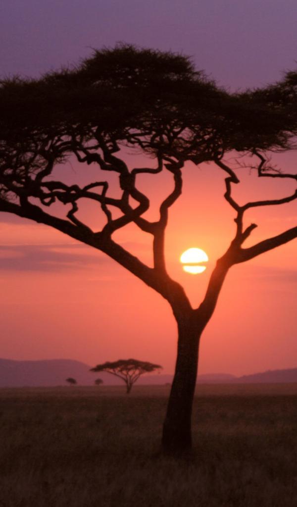 Wallpaper Sparse vegetation savannah at sunset