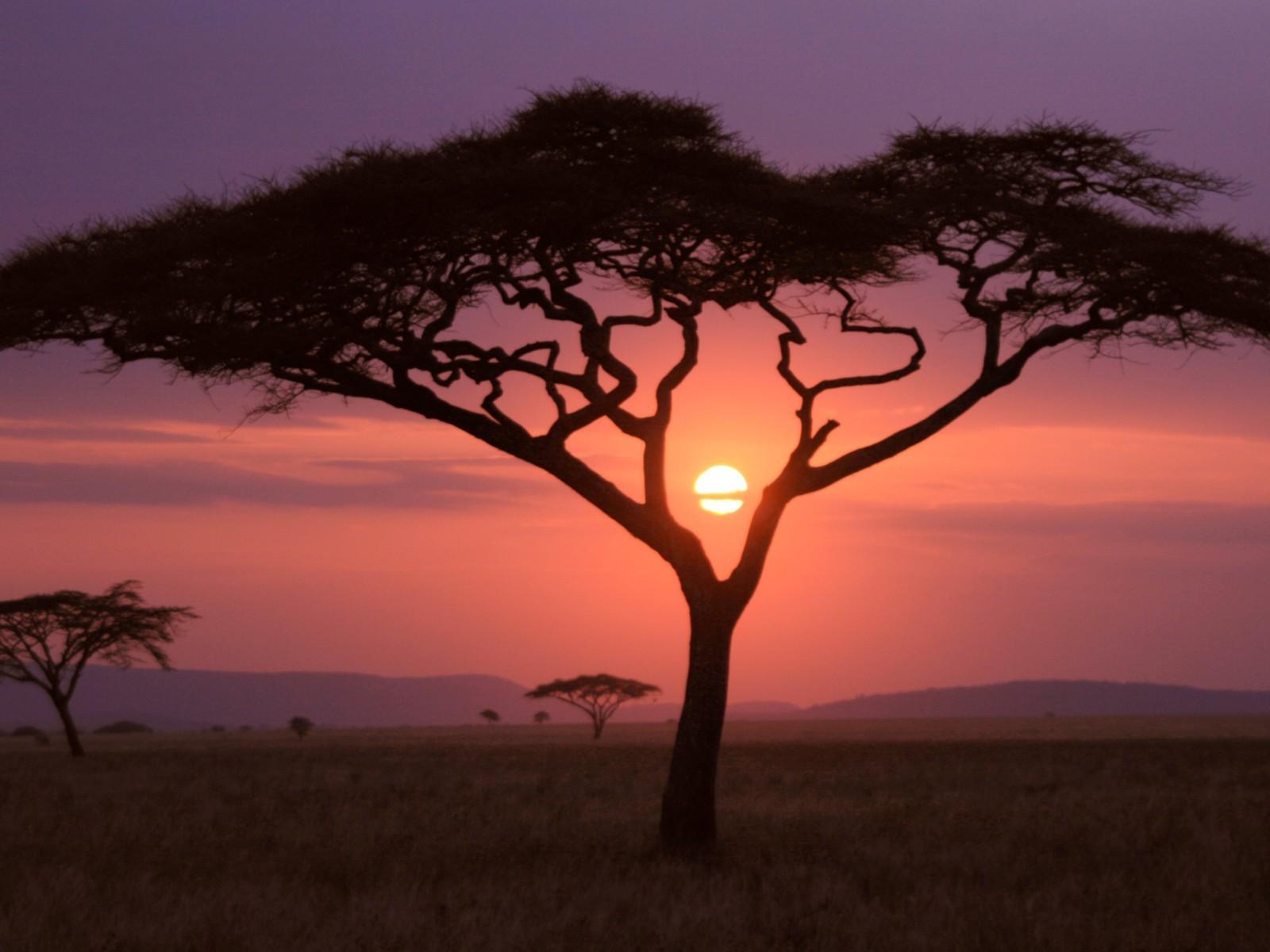 Wallpaper Sparse vegetation savannah at sunset