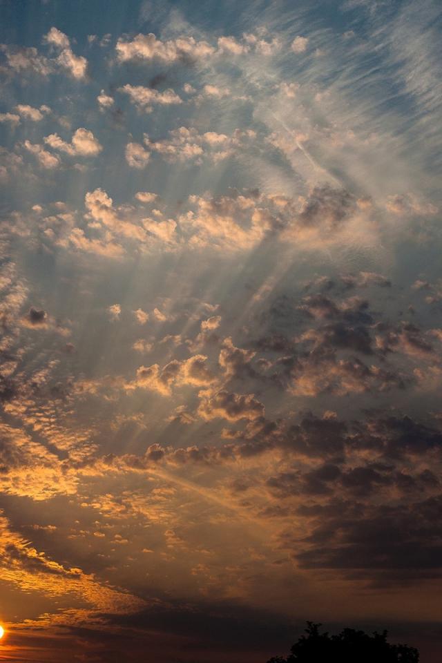 Wallpaper Sun at sunset illuminates cirrus clouds