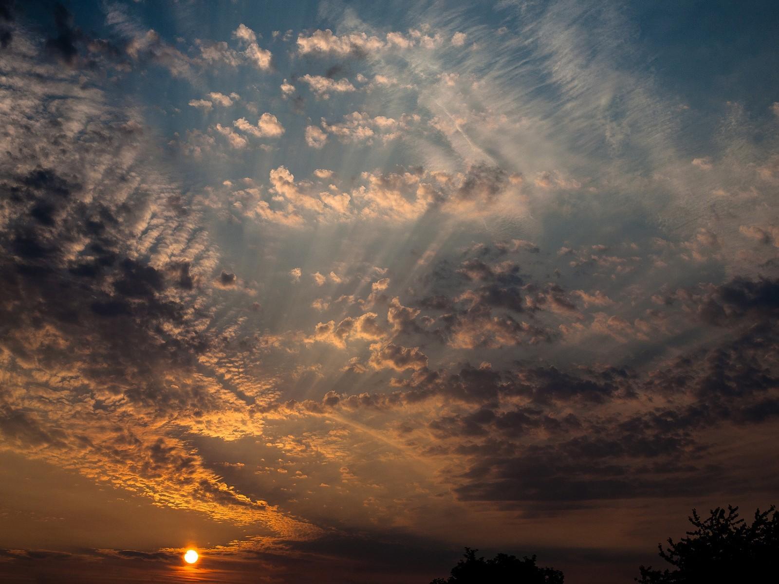 Wallpaper Sun at sunset illuminates cirrus clouds