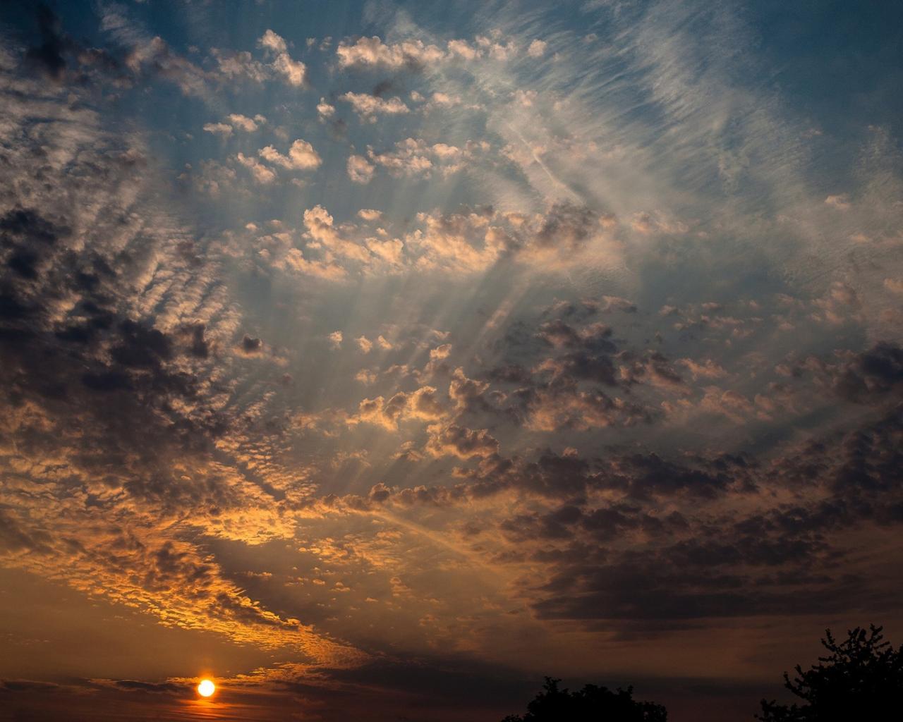 Wallpaper Sun at sunset illuminates cirrus clouds
