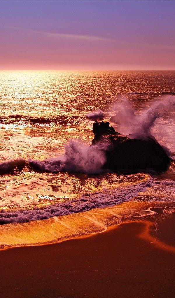 Wallpaper Sea waves at sunset