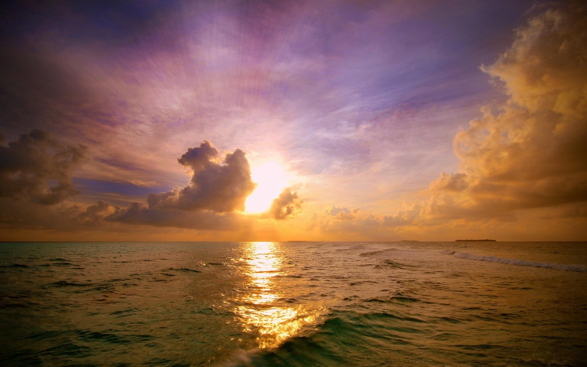 Wallpaper Sunset in the clouds on the high seas