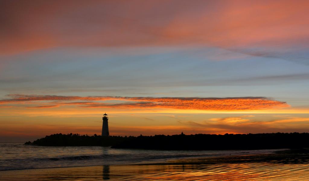 Wallpaper Lighthouse on an orange sunset