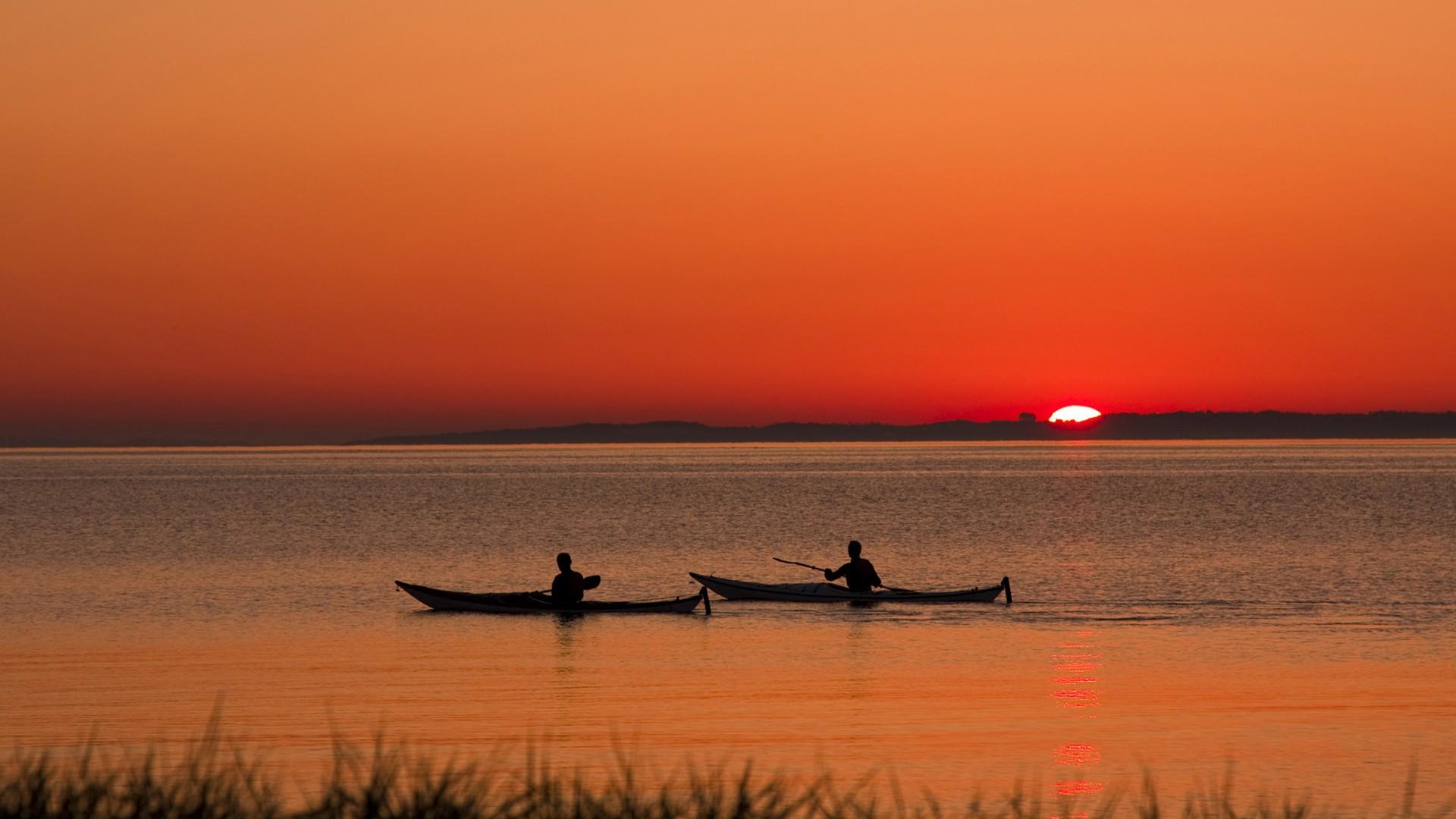 Wallpaper Two boatman at sunset