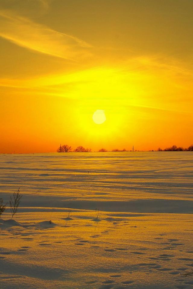 Wallpaper Sun is setting over the snow-covered field