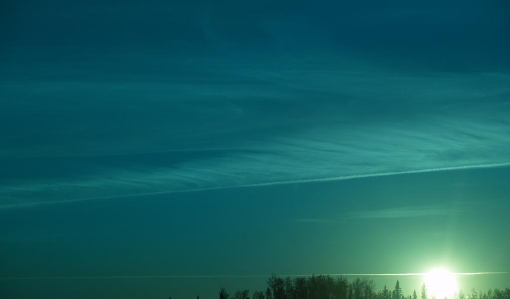 Wallpaper Green sunset over the forest