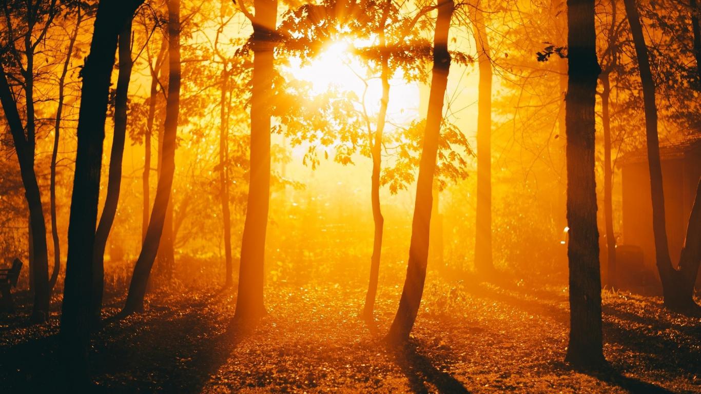 Wallpaper Fiery sunset in autumn forest