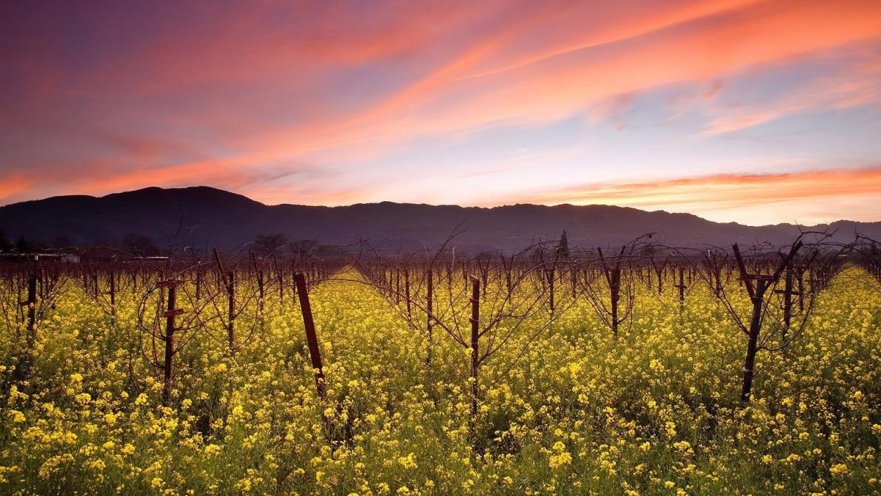 Wallpaper Red clouds over the garden