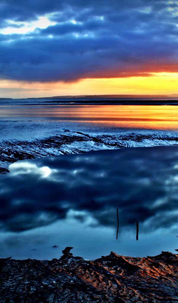 Wallpaper Clouds over the sea after sunset