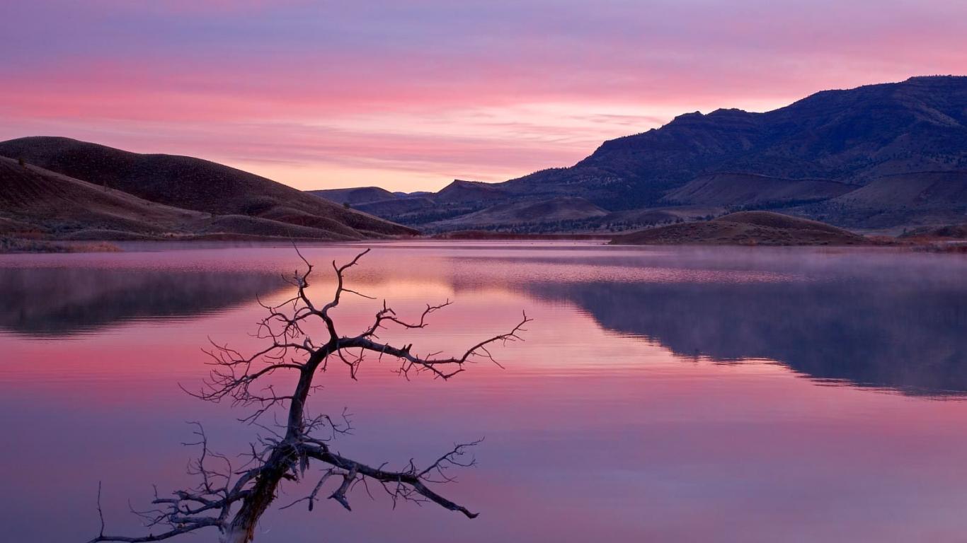 Wallpaper Road, Lake, Mountain lake, Low clouds, Relax