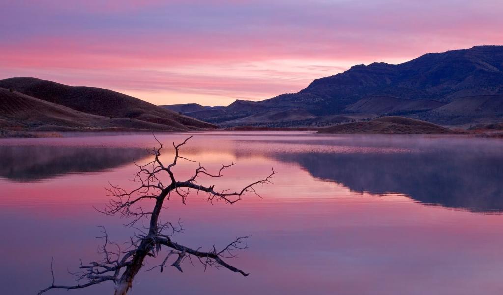 Wallpaper Pink sky above lake