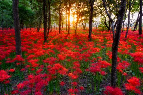 Wallpaper Fields of flowers at sunset