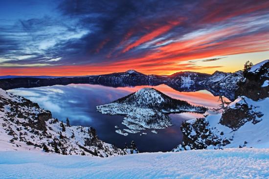 Wallpaper Sunset over mountain lake