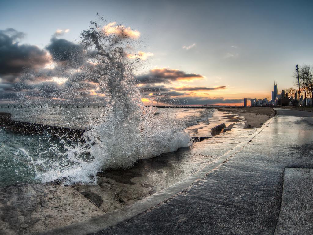 Wallpaper Splash of waves before sunset
