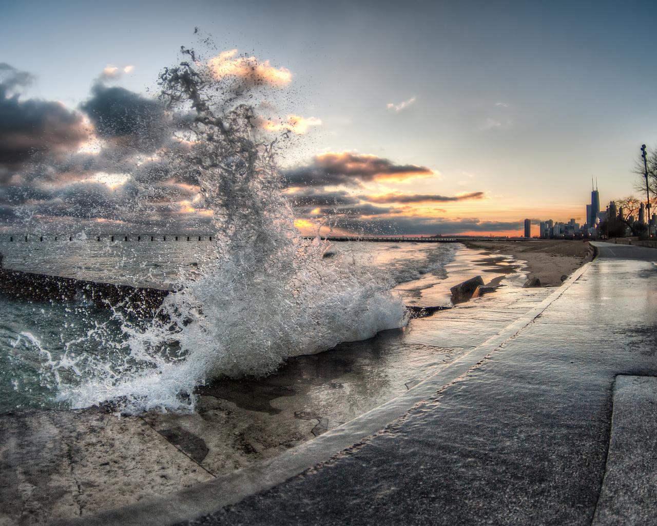 Wallpaper Splash of waves before sunset