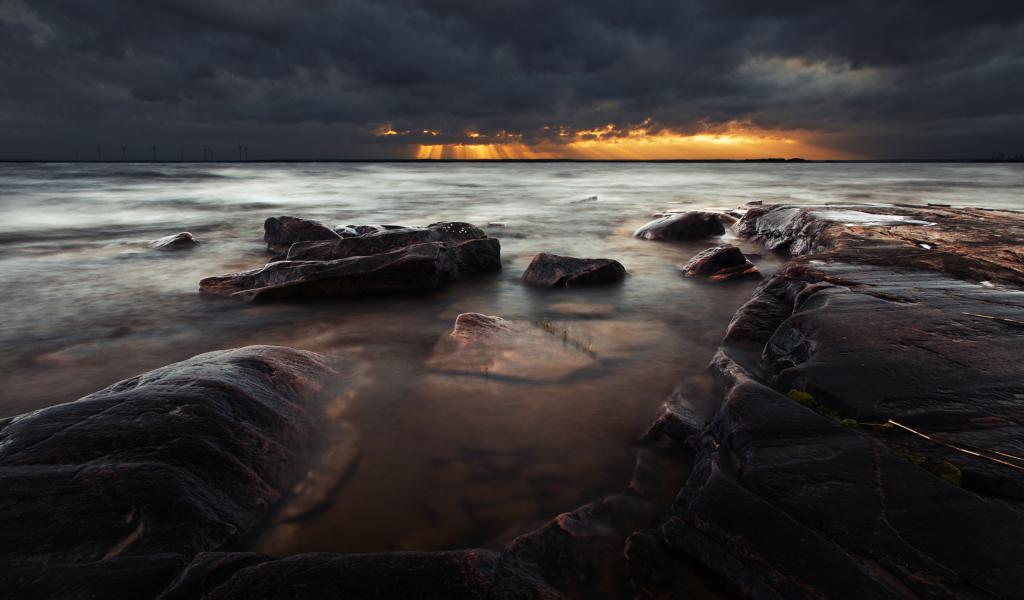 Wallpaper The light of the sun behind black clouds