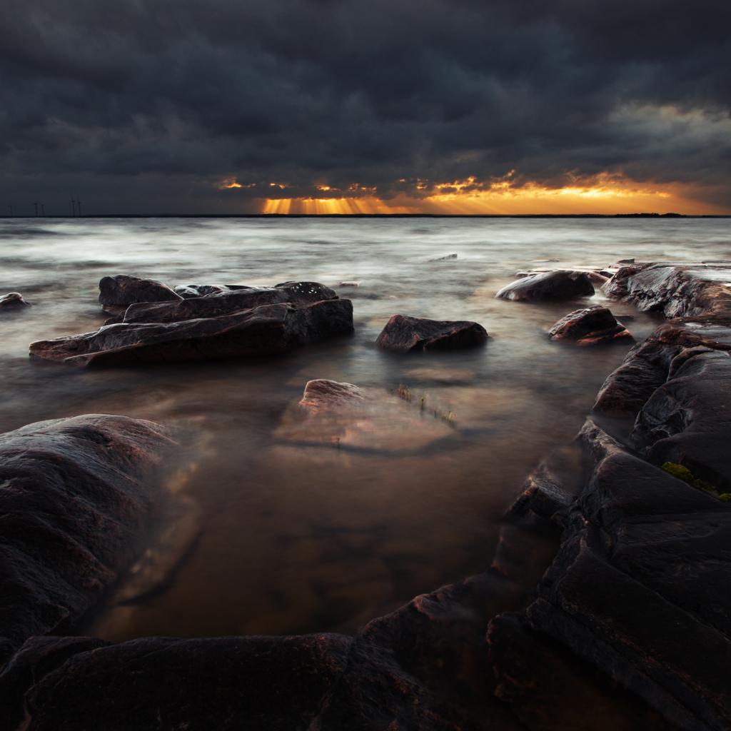 Wallpaper The light of the sun behind black clouds