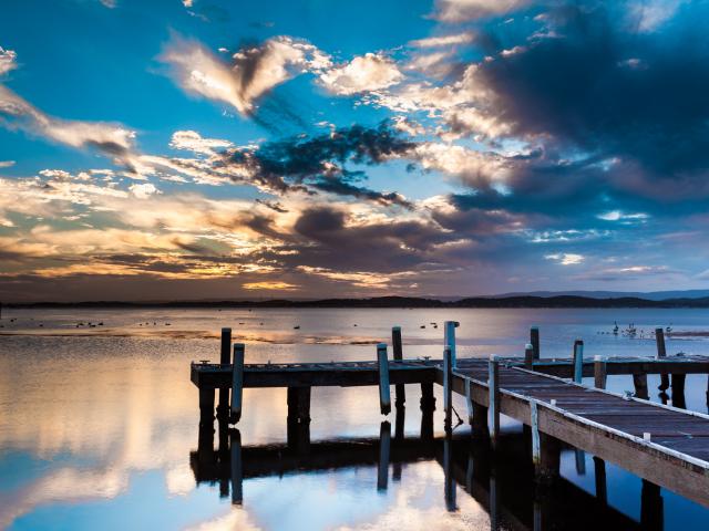 Wallpaper Pier on the lake before sunset