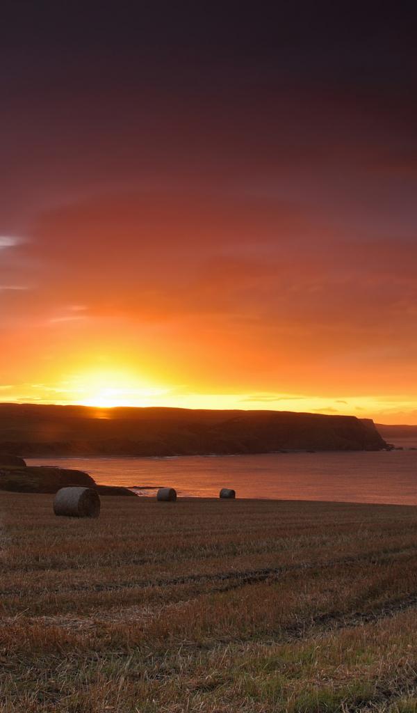 Wallpaper Sunset on stubble field