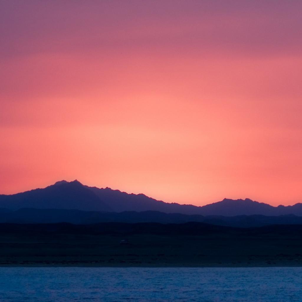 Wallpaper Pink sunset above the blue sea