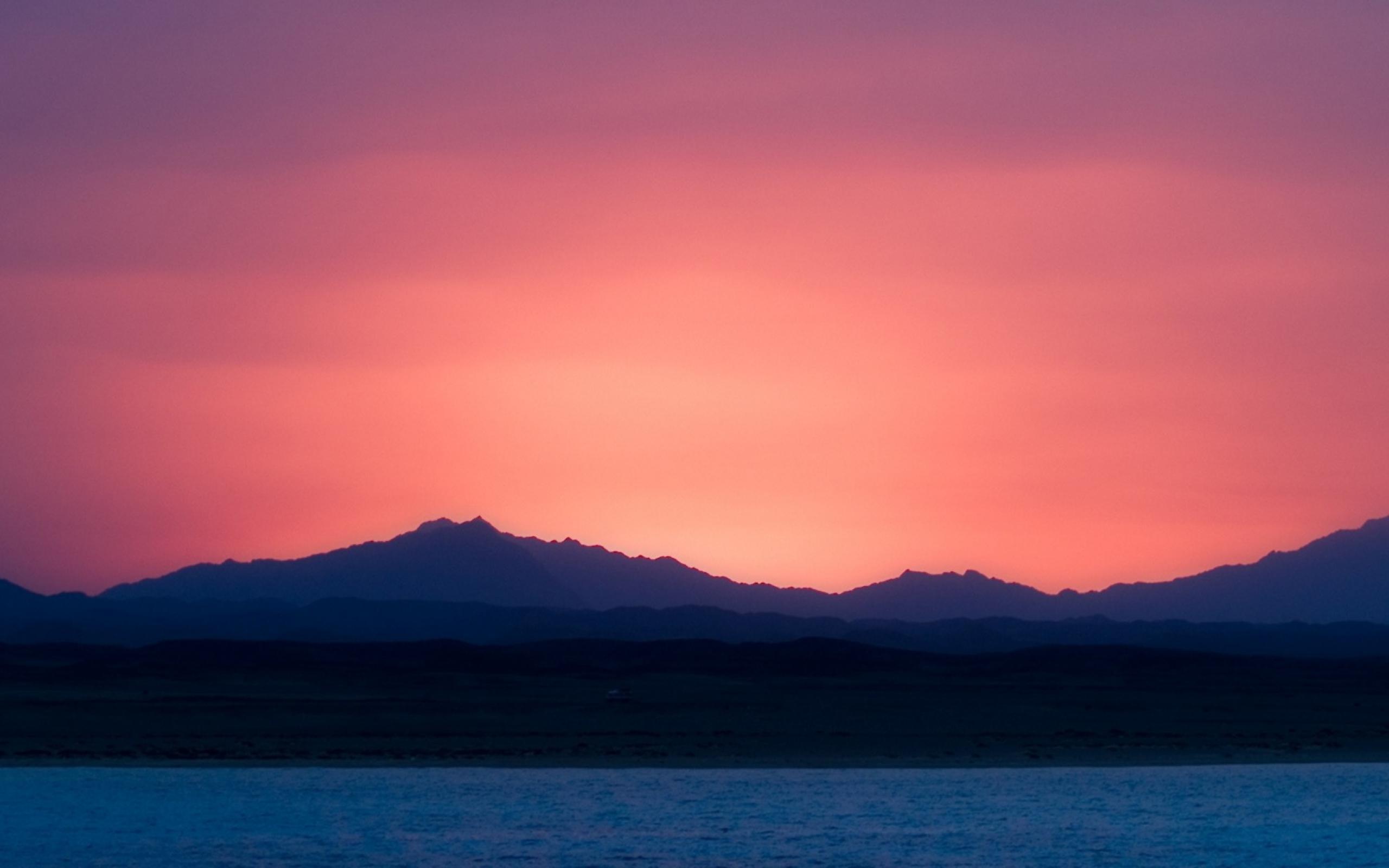Wallpaper Pink sunset above the blue sea