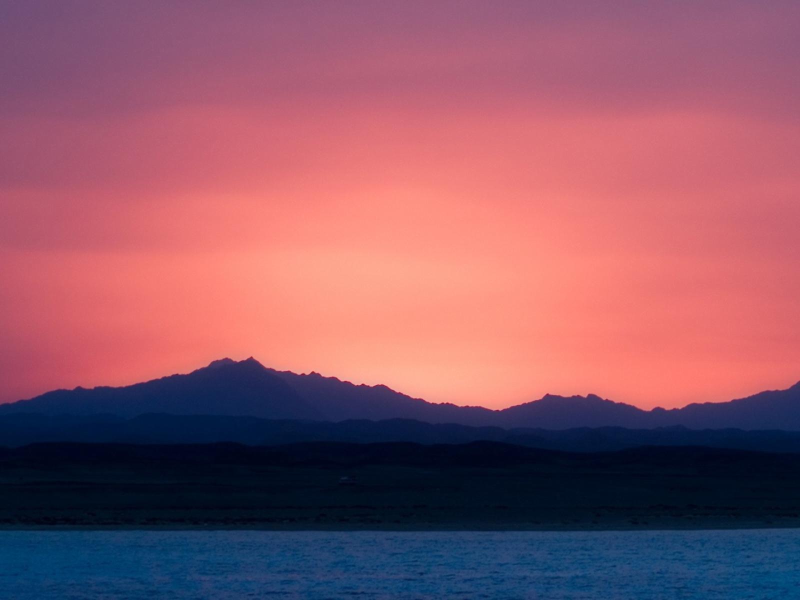 Wallpaper Pink sunset above the blue sea