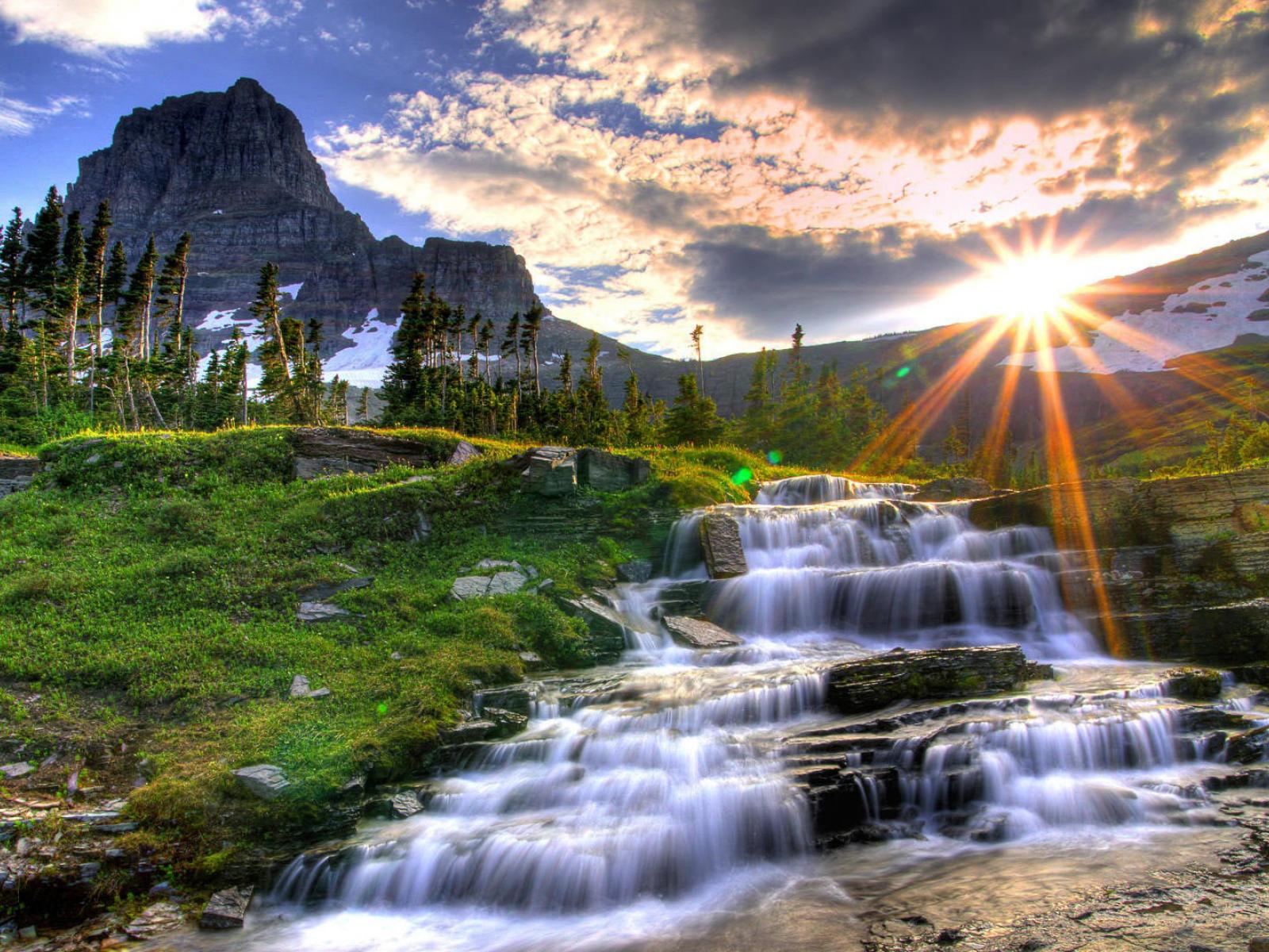 Wallpaper Sunset at the mountain river