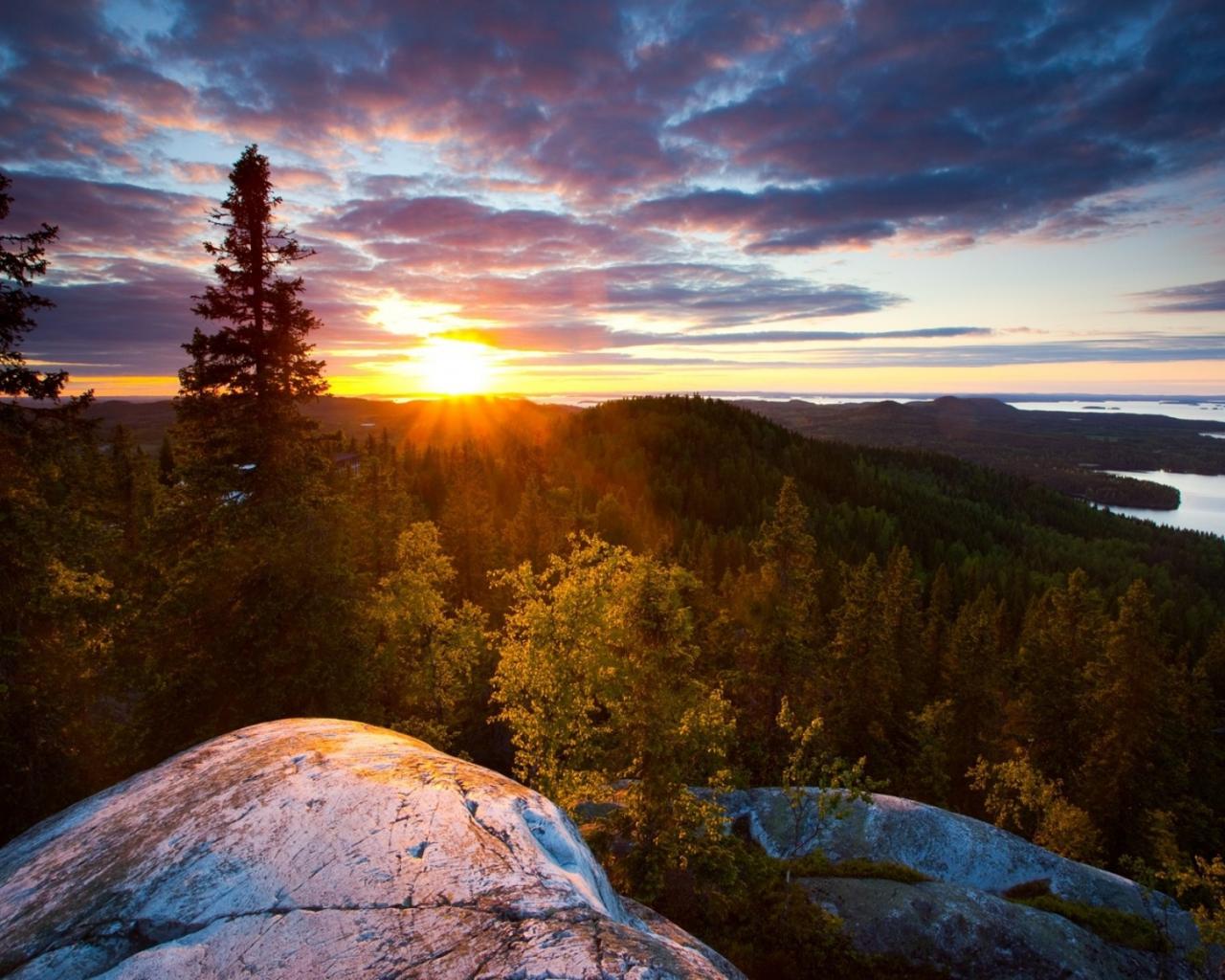 Wallpaper Sunset on the rock