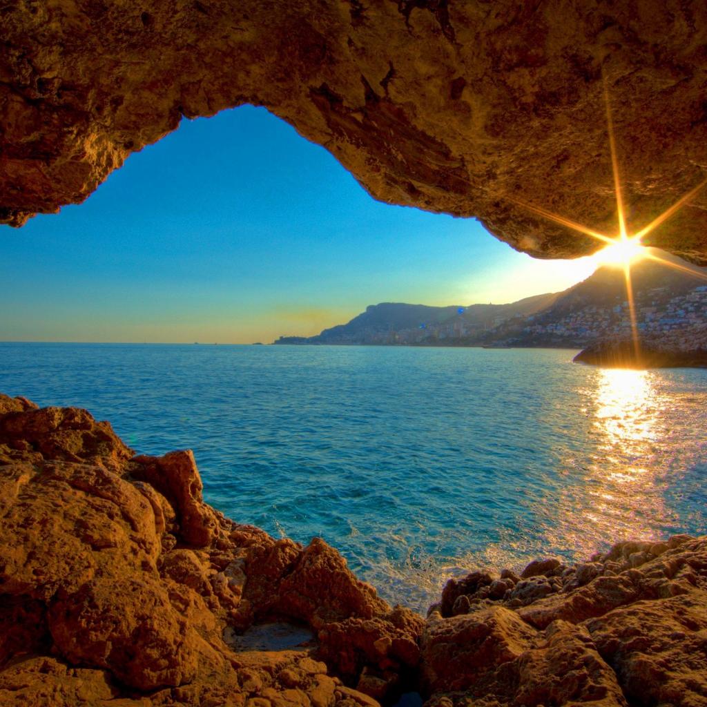 Wallpaper View of the sunset from the cave